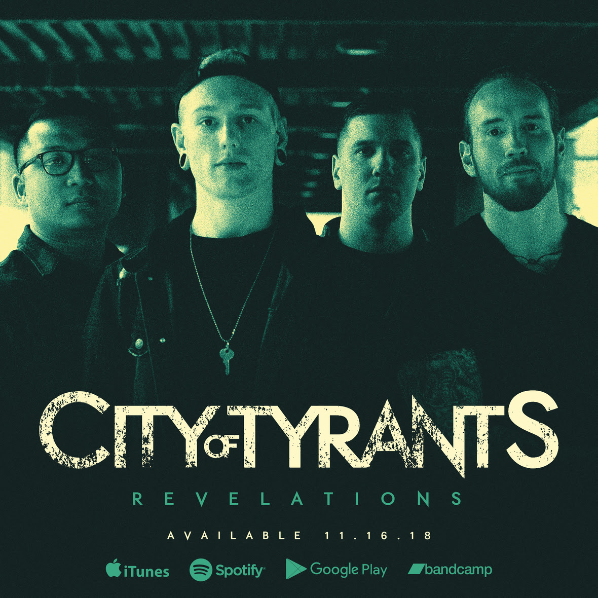 City of Tyrants was formed in 2015 by Kevin Michael (drums), Ed Tyler (guitar), Chingkhei Akoijam (guitar) & Sean Mcgurr (vocals). During a time where the music scene in New Jersey was ever changing, City of Tyrants set out with one core goal in mind and that was to create music that they liked and could be proud of. After the release of the 2016 EP Erebus, the band saw the introduction of new vocalist Charles Horning and bassist Josh Palmer. With the new lineup, COT began the writing and recording of their new album, Revelations, in 2018. Underneath all of the crushing drums, polyrhythmic guitars and soaring vocals, Revelations delivers a strong concept which is both interesting and telling of today’s society.