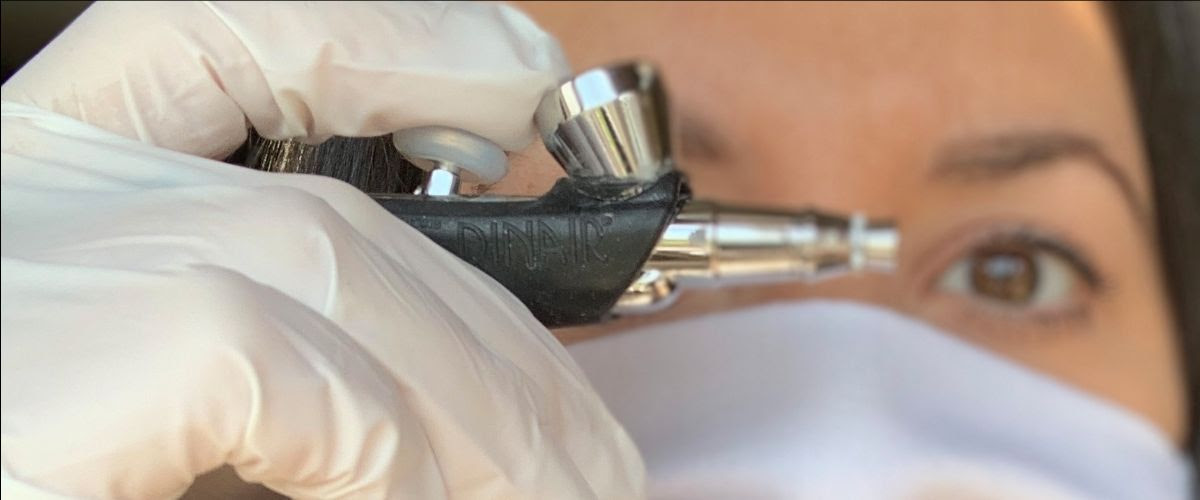 A few years into my career, I heard there was a way to apply makeup by using an airbrush. The fact that there is virtually no cross contamination because you’re not re-using product, and single use, no contact application was very appealing to me. I knew my clients would love it! A few months later, I became certified in New York City by Dina Ousley, creator of the DINAIR Airbrush Makeup System. After I had mastered the technique, Dina hired me to apprentice her to teach the class to other students and makeup artists. Only air and makeup touch your skin, creating the most sanitary, germ-free, hypoallergenic experience. I can literally apply a full face of makeup while having extremely limited contact, if necessary. Little did I know how crucial these skills would become, considering the fragile state of crews on production jobs across the country right now.