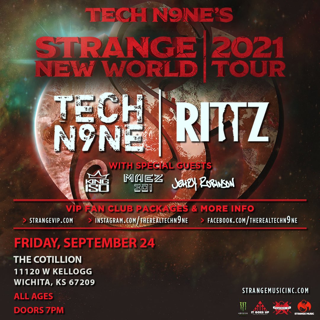 The independent underground would not be what it is today without pioneers like Strange Music cofounder Tech N9ne. Tech’s unparalleled tour schedule and signature rapid-fire “chopper” style combined with the business acumen of Strange Music CEO Travis O’Guin have molded Strange Music into the number one independent hip-hop label in the world. In less than two decades, Tech himself has earned three gold records, sold over two million albums, and made multiple appearances on Forbes’s “Hip-Hop Cash Kings” list. Tech’s multi-faceted skillset has not gone unrecognized by artists of all genres, exemplified by collaborations with such diverse artists as The Doors, Slipknot’s Corey Taylor, Eminem, and Boyz II Men, to name just a few. Everyone from Dwayne “The Rock” Johnson to Elton John has been spotted bumping Tech N9ne records, a testament to constant reinvention and inarguable excellence that has become standard of Tech’s work. It’s by no coincidence that his latest label-wide collaborative project was named Dominion – Tech N9ne will not stop until he and Strange Music have completely dominated the world of hip-hop and beyond.